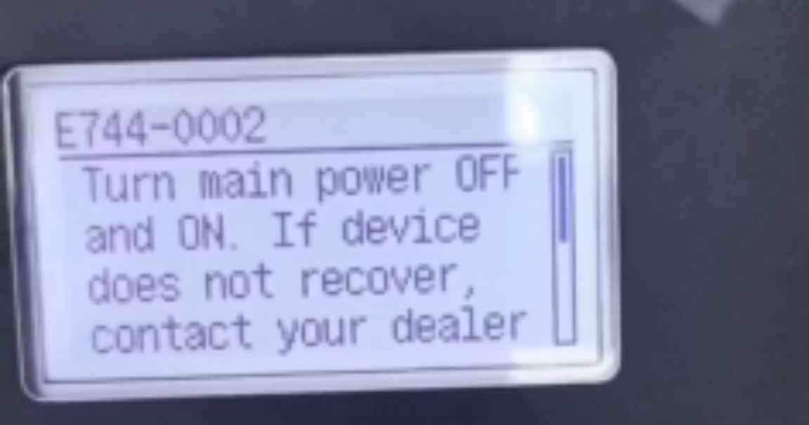 佳能MF113w在固件更新失败后开机显示E744-0002错误代码,打印机的固件在更新过程中受到损坏或中断,导致设备无法正常启动。